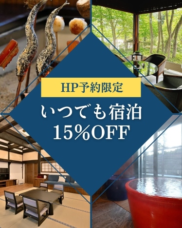 平の高房では、公式サイトからのご予約がいつでも一番お得。ご宿泊料金が【15%OFF】でご利用いただけます。