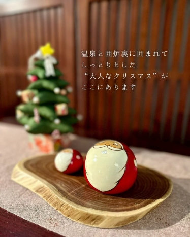 大きなツリーや賑やかな音楽はありませんが、館内には、ささやかなクリスマスの飾りを添えました。静かな山里で、温泉に浸かり、囲炉裏の火を眺めながら過ごす冬の夜。