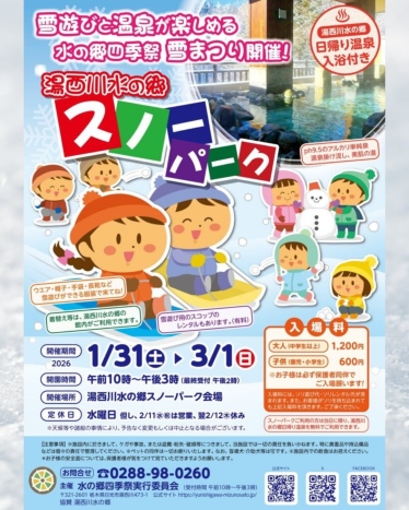 湯西川の冬は、雪遊びも楽しめます。湯西川水の郷では、雪遊びと温泉が一緒に楽しめる【スノーパーク】が開催されています。小さなお子さまも楽しめる雪遊びエリアで、思いきり体を動かした後は、日帰り温泉でぽかぽかに。冬の湯西川は、ご家族での思い出づくりにもおすすめです。