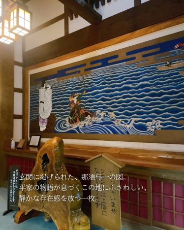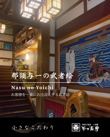 玄関でふと目に入る、この一枚。 実は、那須与一の「扇の的」を描いた絵なんです…と思いきや