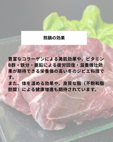 冬の名物、熊鍋。滋味深い味わいで身体の芯まで温まる一鍋です