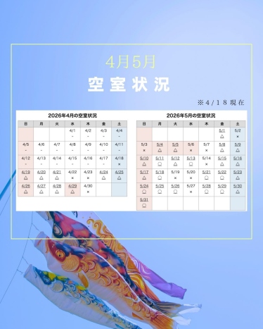 GWの人気日程は、残りわずかとなっております。ご家族旅行にも、大切な人とのご旅行にも。静かな温泉旅をお考えの方は、ぜひお早めに。
