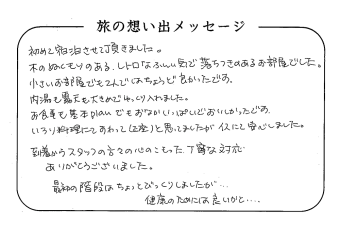 平の高房にご宿泊いただいたお客さまからの声をご紹介。 みなさまから届いた暖かいお言葉やご意見・ご感想を真摯に受け止め、より良いおもてなしの心を育ててまいります。