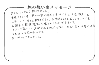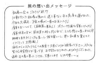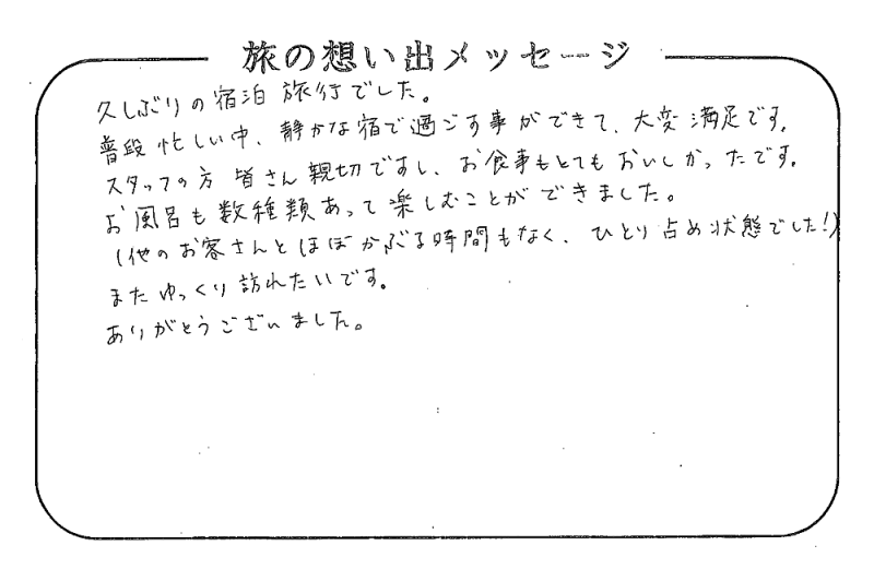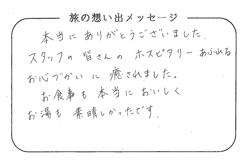 平の高房にご宿泊いただいたお客さまからの声をご紹介。